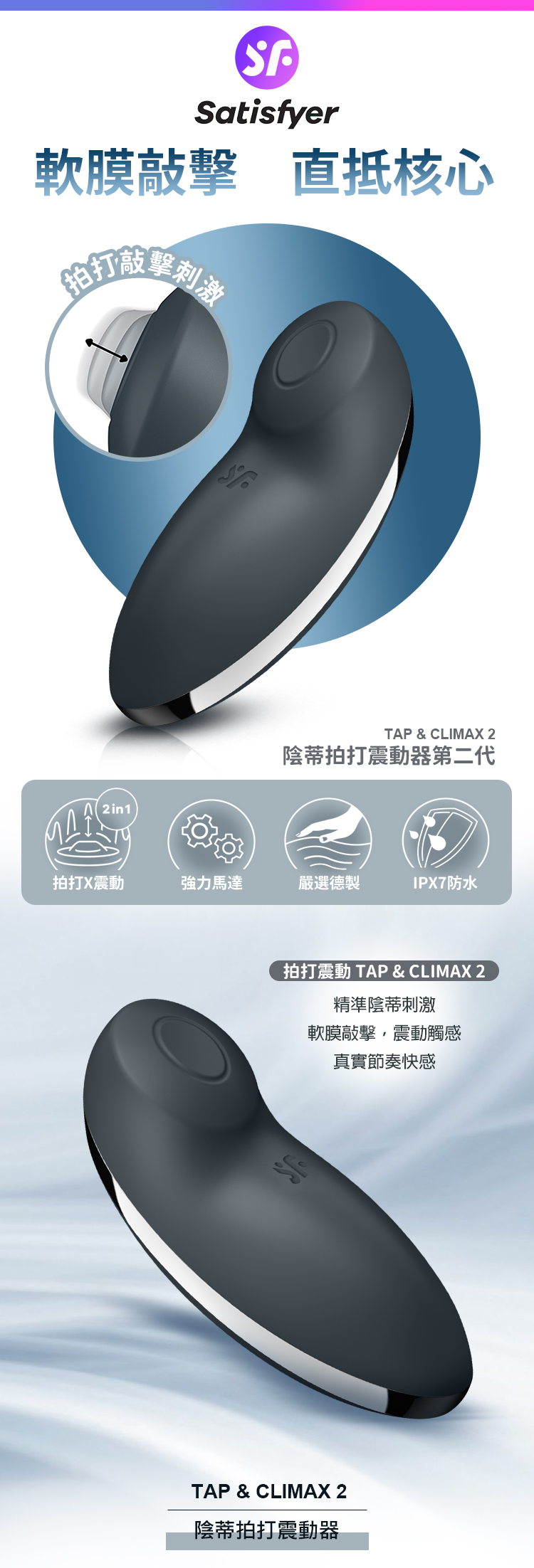 品名:Satisfyer|Tap & Climax 2|陰蒂拍打震動器 黑